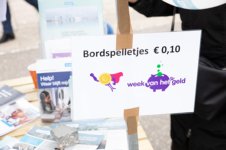 Op woensdag 27 maart vond weer het Geldfestival in Almere plaats. Ook dit jaar was het druk bezocht. Ruim 350 kinderen kwamen een strippenkaart halen en deden mee aan alle activiteiten. Een poppentheater voor de allerkleinsten. Leuke spelletjes, schminken... Lekker eten, muziek en het bleef droog! Wethouder Jerzy Soetekouw bezocht het Geldfestival en sprak met de aanwezigen. De spaarpot, ontworpen door Michael Speek, is origineel en laat kinderen nadenken over hun spaardoelen. De vlog gemaakt door de jongeren van Multi Squad was supertof.