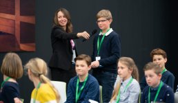 Op donderdag 28 maart stelden enthousiaste leerlingen uit groepen 7 en 8 goede vragen op de Kinderpersconferentie.