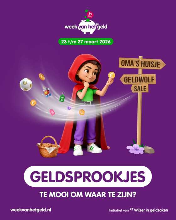 De luxe levens van influencers, reclames met ‘nu-of-nooit’-deals en verhalen over snel geld verdienen – jongeren komen er dagelijks mee in aanraking. Maar niet alles wat blinkt, is goud. Met de (les)materialen uit het themapakket stel je in een handomdraai een financiële les samen die kinderen leert hoe ze door te mooie verhalen over geld heen kunnen prikken. Zo laten zij zich niet langer betoveren door geldsprookjes.